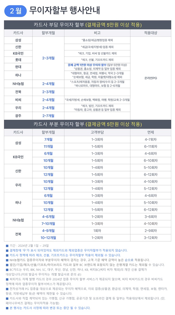 (카드사에 따라 혜택이 상이하니, 해당 카드를 확인해주세요. 카드사 내부 사정에 따라 변경될 수 있습니다.)